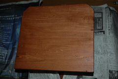 塗装します。チーク色。 天板を付けると塗装しにくいので、天板を付ける前に、天板と下部を別々に塗っていきます。 ネックの上は、例によって接着の都合上、塗装しません。 |