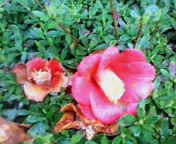 職場の玄関先には椿の木とつつじの植え込みがある。まだ固いつぼみのつつじの上に、椿の花がたくさん落ちていた。椿の花びらは半分枯れかけだけど、緑と赤の対比が目を引いた。きれいなのか汚いのかよく分からないものに最近惹かれる。もっと写真うまくなりたいなあ。
