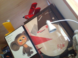 ベッドからの眺め。チェブラーシカの笑顔とリシツキーの構成はいつ見ても心落ち着くのであった。