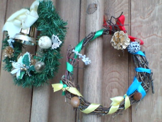向かって右は、ゆういちろうが学校で朝顔のつるを利用して作ったリースである。