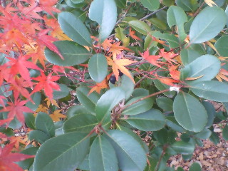 駅前の遊歩道では、シャリンバイの濃い緑にもみじの赤がとても映えていた。