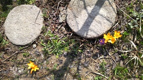 裏庭のこの辺りは今は水仙の花がいい匂いを漂わせている。足元のミントを踏めば爽やかな香りが立ち上る。ミツマタの花が終ってしばらくしたら手前向かって右の山椒の葉も芽生えてくる。その頃は、ちょうど筍の時期である。植物のリレーのことを考えたら、とてもいい気分になるわ〜。とくに裏庭はね、ほとんど自分の楽しみのためだけに気ままに植物を植えているので、気の置けない友達みたいな気がするもの。ちっちゃな体のくせに広大な宇宙そのもののような気がする友達ですよ。